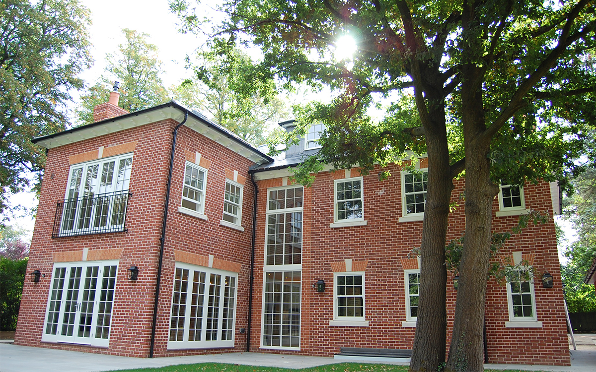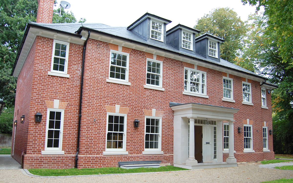 A four storey high-specification detached house designed in a classical style and incorporating light wells at ground floor level to bring daylight into the basement living space.