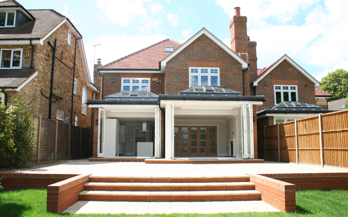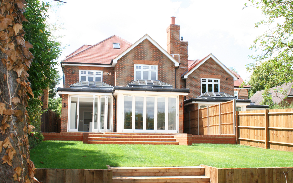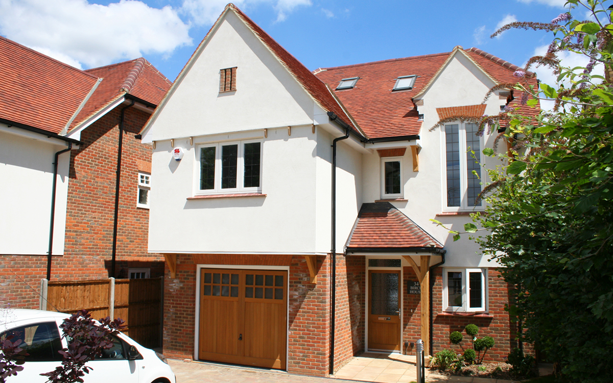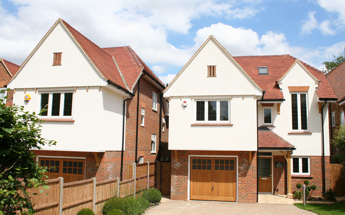 Two detached houses in an Arts and Crafts design style on a plot formerly occupied by a single bungalow.