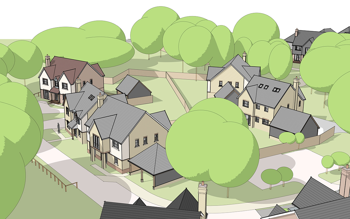 Planning approval was obtained for 42 dwellings grouped around a new ‘Village Green’ and existing mature trees to create a focal point for the community in the middle of the site.